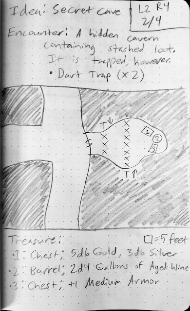 - Treasure: 2 Daggers, 2d4 Rations, 2d6 Silver pieces.